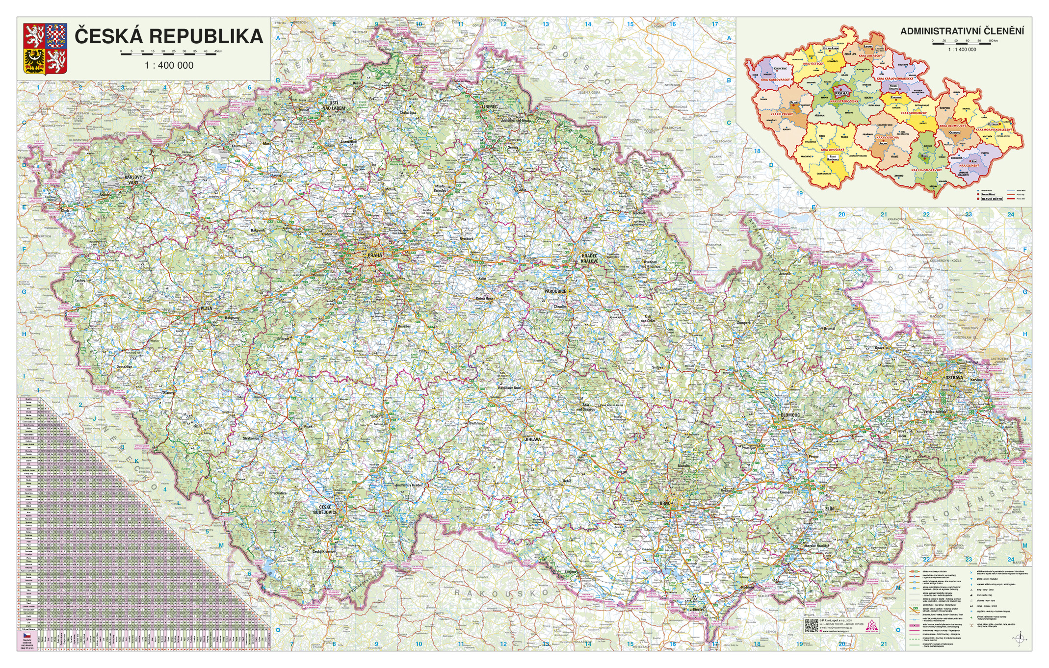 Přehledná aktuální silniční nástěnná mapa České republiky v měřítku 1: 400 000. Patří k nejoblíbenějším v této kategorii.