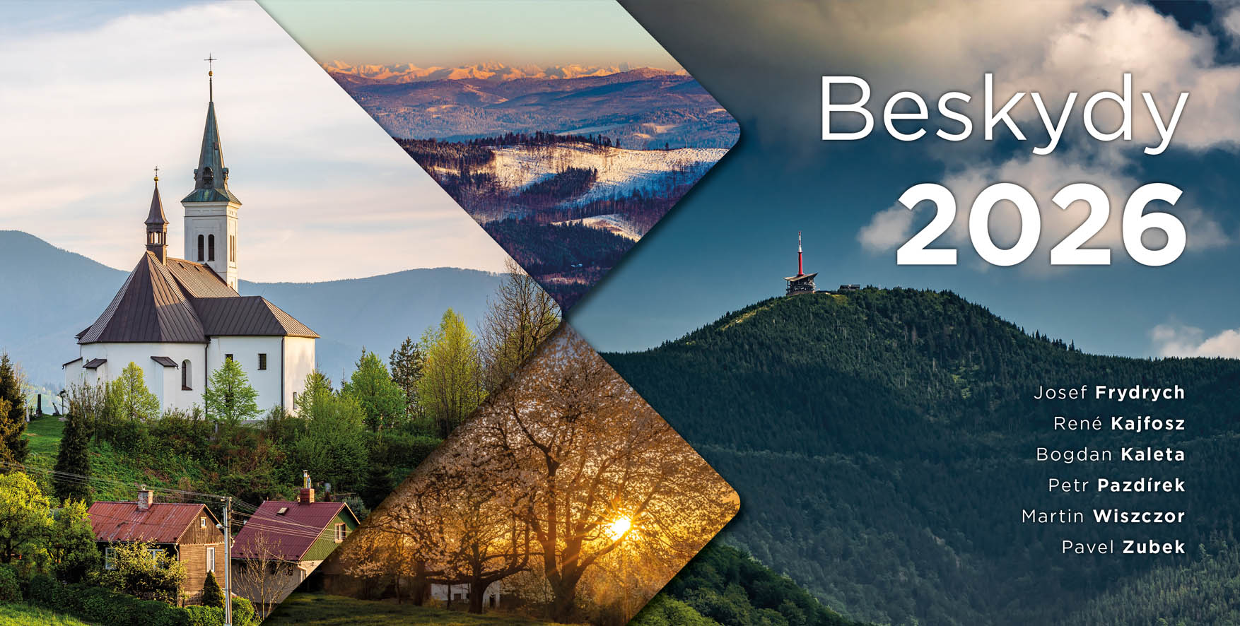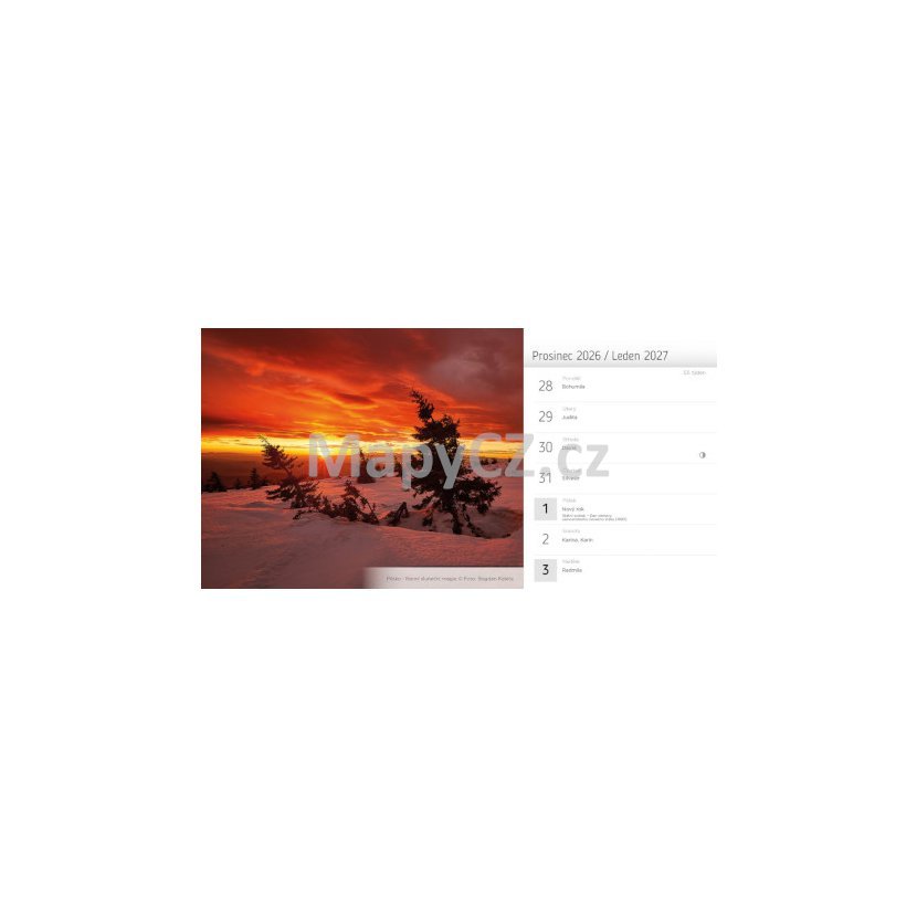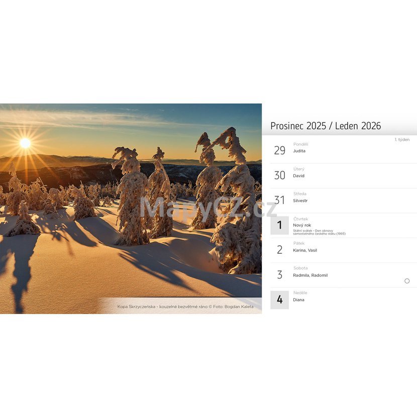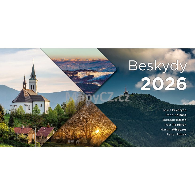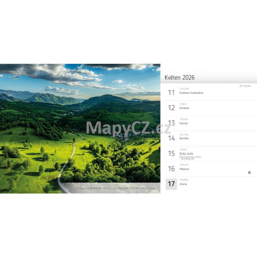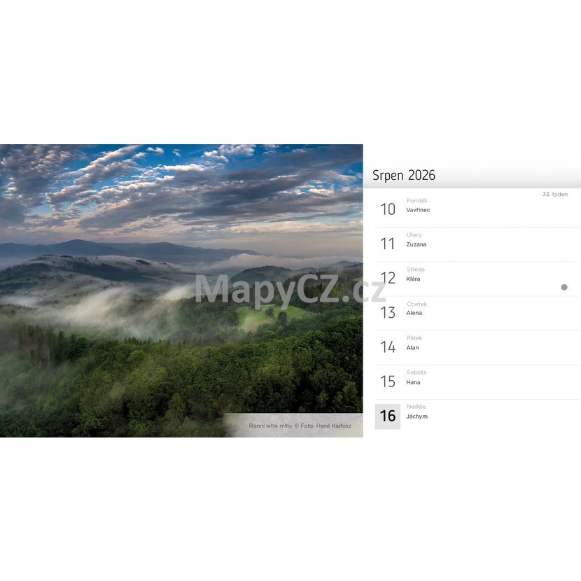 Stolní kalendář BESKYDY 2026 - týdenní, plánovací, státní svátky, fáze měsíce